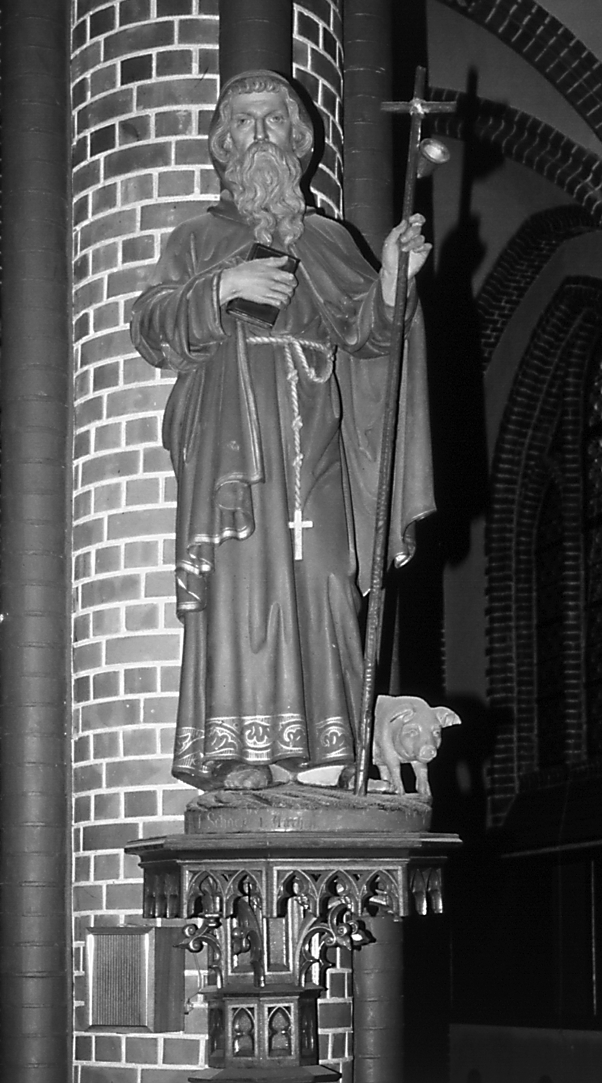 Het beeld van Antonius met het varken in de parochiekerk van Vaals, 1998. Foto A. Jacobs.