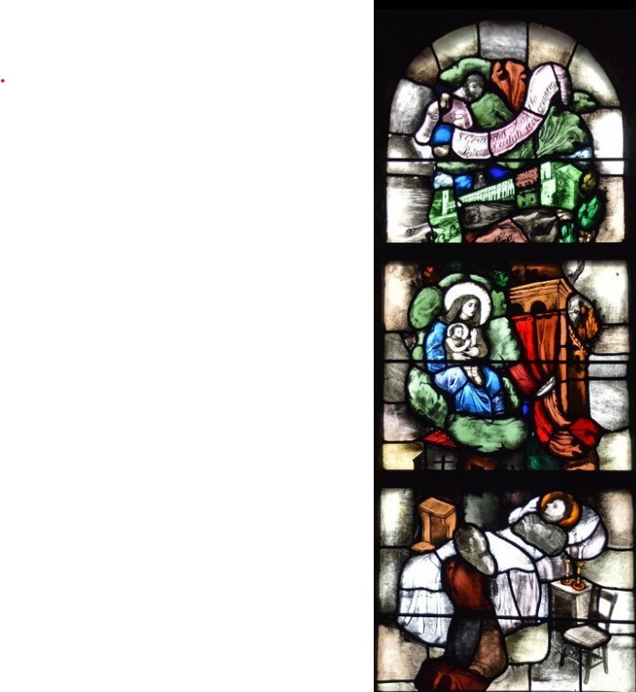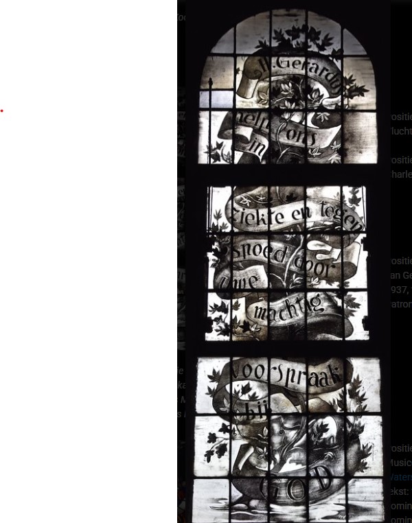 Glas--in-loodraam in de Gerarduskapel voorstellend het sterven van Gerardus.