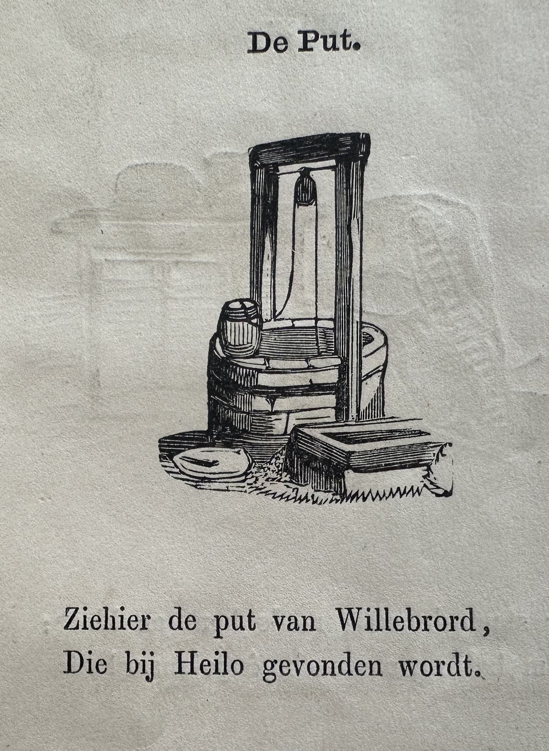 Tekening met versje op de recent gevonden put in Heiloo, in: Jan Schenkman, Grappig allerlei (ca. 1855).