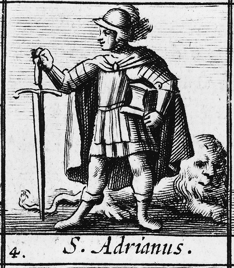 St. Adriaan. Afbeelding bij de maand maart, in Ribadineira en Rosweydus, Generale legende der heylighen (1686).