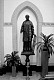 - Laurentius was een diaken die in 258 te Rome onder keizer Valerianus de marteldood stierf. Hij werd geroosterd en wordt dan ook met een rooster als attribuut voorgesteld (vgl. ⟶ Oostbroek; ⟶ Dongen) en aangeroepen tegen brandwonden. Een van de diakonale taken was de armenbedeling. - Het neoclassicistische lindehouten beeld van St. Laurentius, met in zijn linkerhand een op de grond rustend rooster, dateert uit omstreeks 1840, is ongeveer 170 cm hoog. Het beeld staat op een verhoog opgesteld tegen de muur van een van de zijbeuken (bij binnenkomst, rechts van het altaar). Omdat de oorspronkelijke polychromie tijdens de oorlogsjaren schade had opgelopen, is het beeld in 1985, bij gelegenheid van het 100-jarig bestaan van de kerk, bruin gebeitst door een van de parochianen, dhr. J. van der Velden. - In 1874 werd het beeld voor 180 gulden door de parochie aangekocht, bij gelegenheid van het 12,5-jarig pastoorsfeest van pastoor Van Mierlo. Op grond van stijl en afwerking veronderstelde archivaris Albert Delahaye omstreeks 1964 abusievelijk nog een verband tussen het Laurentiusbeeld en de (in de Tweede Wereldoorlog grotendeels verloren gegane) koorbanken en beelden uit circa 1700 van Wouw (⟶ Wouw). |